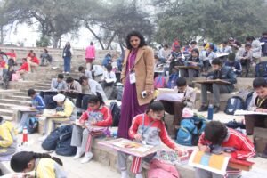 सूरजकुंड की वादियों में आयोजित किए जा रहे 39वें अंतरराष्ट्रीय आत्मनिर्भर शिल्प उत्सव 2026 में एक ओर जहां कलाकार अपनी कला का हुनर दिखा रहे हैं वहीं दूसरी ओर शिल्पकार भी अपने हाथों से बनाए गए विभिन्न उत्पादों से पर्यटकों की प्रशंसा का पात्र बने हुए हैं। इस भव्य उत्सव के माध्यम से स्कूली विद्यार्थियों को भी अपनी प्रतिभा को दिखाने का सशक्त मंच मिला है। इसी के चलते हरियाणा पर्यटन निगम द्वारा शिक्षा विभाग की संयुक्त भागीदारी के साथ हर रोज अलग-अलग स्कूलों के विद्यार्थियों की विभिन्न प्रतियोगिताएं आयोजित करवाते हुए विद्यार्थियों को आत्मनिर्भर शिल्प उत्सव की गतिविधियों से जोड़ा जा रहा है। सूरजकुंड अंतरराष्ट्रीय शिल्प उत्सव के दौरान रविवार को मेला परिसर में स्थित नाट्यशाला में विभिन्न विद्यालयों के छात्र-छात्राओं की सीनियर और जूनियर वर्ग की रंगोली और फेस पेंटिंग स्पर्धा आयोजित की गई। विद्यालय स्तरीय प्रतियोगिताओं में विद्यार्थियों ने अपनी कला और प्रतिभा का शानदार प्रदर्शन किया।