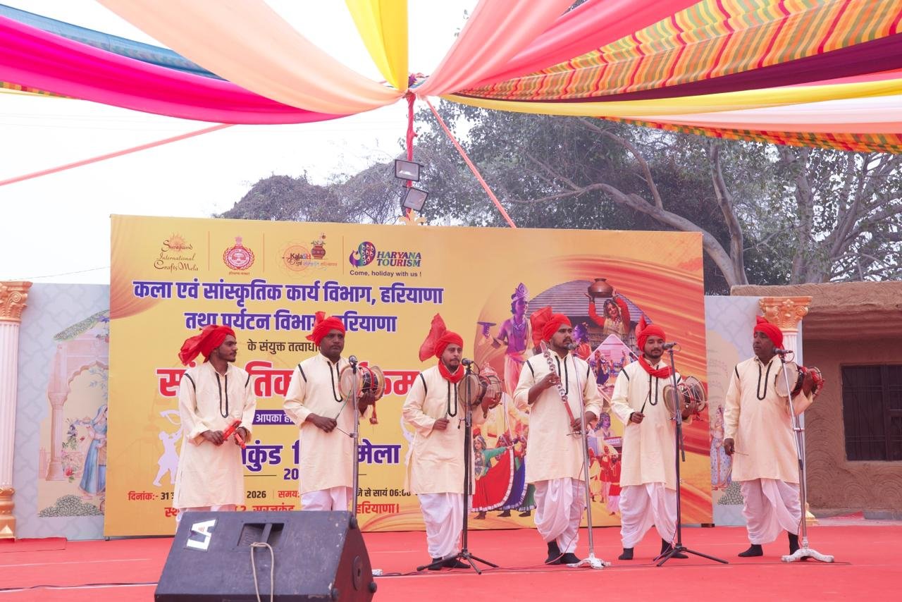 कला एवं सांस्कृतिक कार्य विभाग हरियाणा तथा हरियाणा पर्यटन विभाग के संयुक्त तत्वावधान में फरीदाबाद स्थित सूरजकुंड में आयोजित 39वें अंतरराष्ट्रीय सूरजकुंड आत्मनिर्भर शिल्प मेला 2026 के अंतर्गत चौपाल-2 (छोटी चौपाल) पर सोमवार को विविध सांस्कृतिक कार्यक्रमों का आयोजन किया गया। इन कार्यक्रमों में हरियाणा की लोक संस्कृति, संगीत, नृत्य, नाटक और हास्य की समृद्ध परंपरा की मनमोहक झलक देखने को मिली।