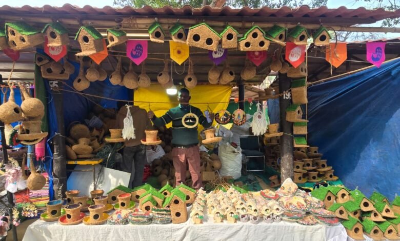 सूरजकुंड मेले में पर्यावरण संरक्षण का संदेश दे रहे नारियल के घोंसले
