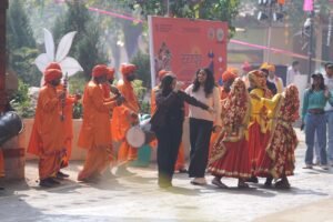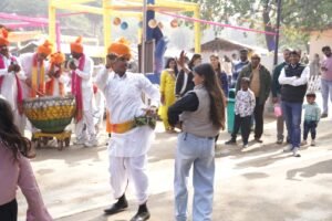 अंतरराष्ट्रीय आत्मनिर्भर क्राफ्ट मेले को लेकर युवा पीढ़ी में जोश है। मेला परिसर में जगह-जगह पारंपरिक वेशभूषा से सुसज्जित ऐसी सांस्कृतिक टोलियां लोगों का खूब मनोरंजन कर रही हैं। मेला परिसर में स्वदेशी उत्पादों की सुगंध, लोक संगीत की गूंज और प्राचीन संस्कृति की झलक आगंतुकों को आकर्षित कर रही है, वहीं इस मेले में हरियाणा की लोक संस्कृति से बीन, नगाड़ा पार्टी कलाकार पर्यटकों का जोरदार स्वागत कर रहे है। बीन व नगाड़ा पार्टी की प्रस्तुति से युवाओं के पांव रुक नहीं पाते और वो नाचने लगते हैं। कुछ युवा तो बड़े ही मोहक अंदाज में डांस करने लगते हैं। यह पार्टियां मोरबीन, चिमटा, सेट्रम, ढोल, डूबी जैसे वाद्य यंत्रों की सुरीली धुनें बिखेर कर लोगों का मनोरंजन कर रही हैं। यहां रोज़ाना हजारों की संख्या में आ रहे पर्यटक जुगलबंदी के साथ मस्ती में नाचते हैं। पार्टी के सदस्य नगाड़ा, बीन कच्ची घोड़ी की तान, झांज एवं ढप बजाकर पर्यटकों का मनोरंजन कर रहे हैं साथ ही इनके से साथ सेल्फी भी ले हरे है।