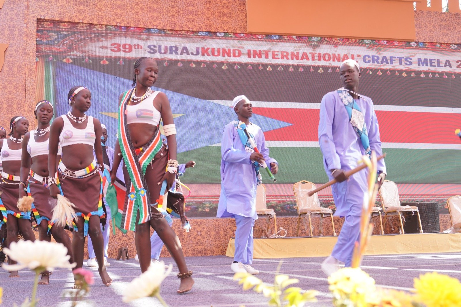 इन दिनों चल रहे 39 वें सूरजकुंड अंतरराष्ट्रीय आत्मनिर्भर शिल्प महोत्सव में दर्शकों को विभिन्न देशी विदेशी कला और संस्कृति का अनूठा संगम देखने को मिल रहा है। मेले में मुख्य चौपाल पर दिनभर देश-विदेश के प्रसिद्ध लोक कलाकार सांस्कृतिक कार्यक्रमों की प्रस्तुति से दर्शकों का मनोरंजन कर रहे हैं। मेले में प्रतिदिन पहुंच वाले दर्शक न केवल हस्तशिल्प व अन्य सामान की खरीदारी कर रहे हैं, बल्कि चौपाल पर आयोजित विभिन्न संस्कृतियों के मेलजोल के भी साक्षी बन रहे हैं।
