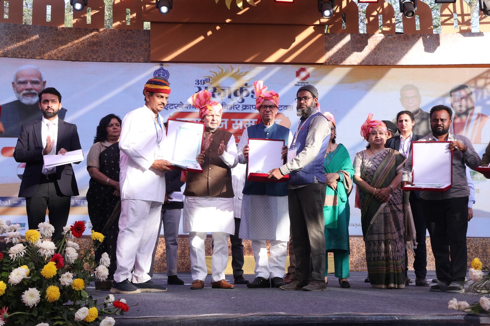 39 वें सूरजकुंड अंतरराष्ट्रीय आत्मनिर्भर शिल्प मेला में हरियाणा के माननीय राज्यपाल प्रोफेसर असीम घोष के हाथों मिले अवार्ड पाकर शिल्पकार काफी प्रफुल्लित हुए। रविवार को 39वें सूरजकुंड अंतरराष्ट्रीय आत्मनिर्भर शिल्प मेला का भव्य रूप से समापन समारोह किया गया। इस समारोह के मुख्य अतिथि हरियाणा के माननीय राज्यपाल प्रोफेसर असीम घोष रहे। वहीं समापन समारोह में गरिमामयी उपस्थिति हरियाणा सरकार में कैबिनेट मंत्री विपुल गोयल, नगर निगम मेयर प्रवीण जोशी की रही, जबकि हरियाणा सरकार में पर्यटन मंत्री डा. अरविंद कुमार शर्मा की अध्यक्षता रही। समापन समारोह में शिल्पकार, बुनकरों को अपनी बेहतरीन कला प्रदर्शित करने के लिए सम्मानित किया गया।