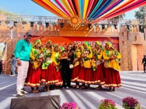 हरियाणा के मुख्यमंत्री श्री नायब सिंह सैनी और पर्यटन मंत्री डा. अरविंद कुमार शर्मा के निर्देशन और मार्गदर्शन में अंतरराष्ट्रीय सूरजकुंड मेले का सफलतापूर्वक आयोजन किया जा रहा है। मेला परिसर की मुख्य चौपाल पर हरियाणा के रेवाड़ी की लावण्या फाउंडेशन के प्रधान दीपक कुमार के नेतृत्व में कलाकार पूर्वी, अंजलि, अंजना, शिखा, भूमि, हेजल, कीर्ति, प्रिया, प्रियंका, रिया, रोहित, संगीता और मोहित ने नृत्य और गायन की शानदार प्रस्तुतियों से पर्यटकों का दिल जीतने का कार्य किया। इसी तरह श्री कृष्णा गु्रप, राहुल शर्मा ग्रुप सहित अन्य स्थानीय कलाकारों ने हरियाणवी लोक संस्कृति से रूबरू करवाते हुए रंग जमाए रखा।