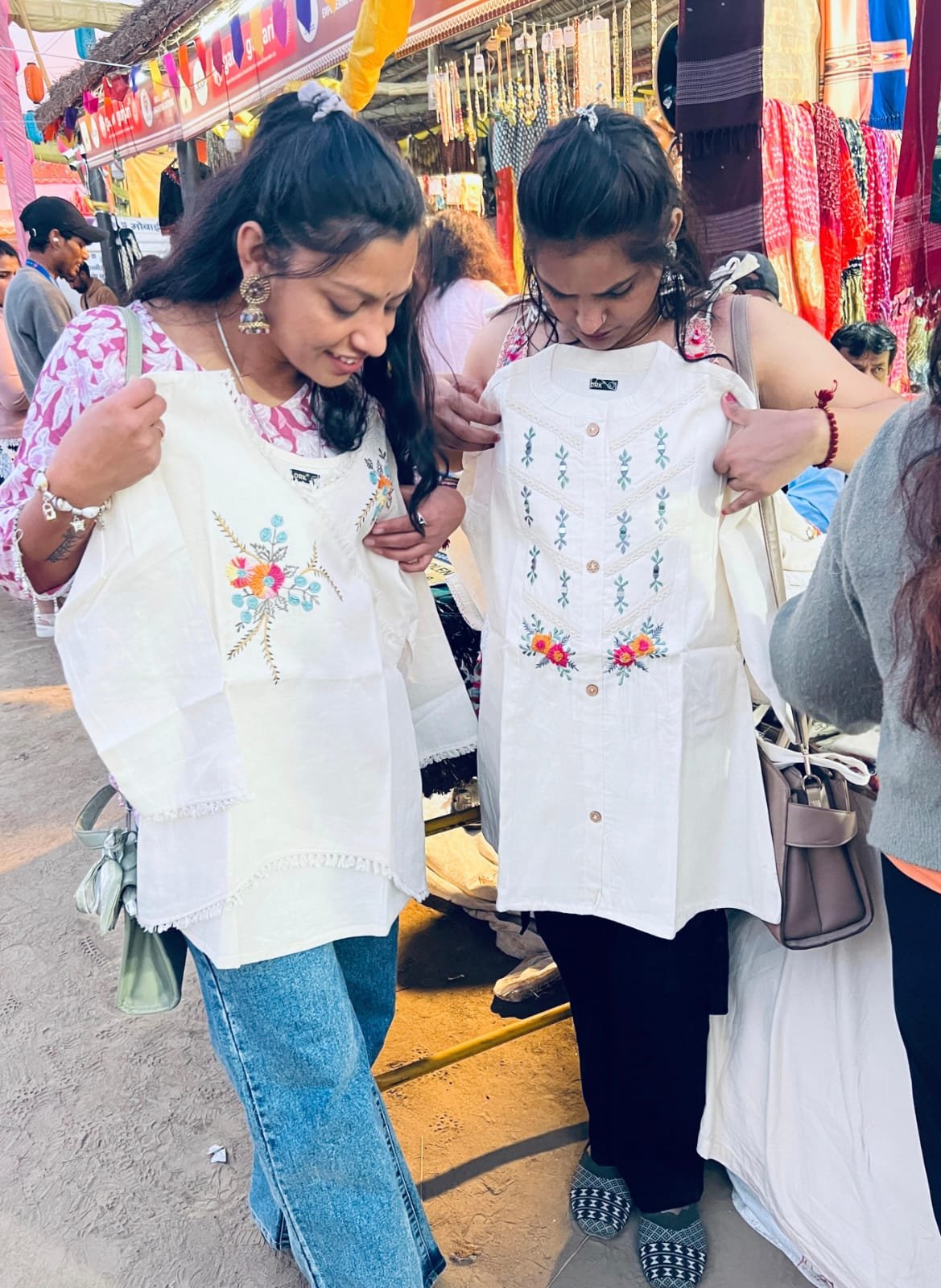 नर्सिंग आफिसर रीनू बताती हैं कि सजी हुई दुकानों में से उनकी नजर आकर्षक खादी की कुर्ती पर पड़ी। हल्का क्रीम रंग आंखों को सुकून देता था। कपड़े की बनावट प्राकृतिक थी—न अधिक चमकदार, न भडक़ीली—बल्कि सादगी में छिपी सुंदरता का प्रतीक। गले पर की गई रंगीन धागों की बारीक कढ़ाई ने कुर्ती को विशेष आकर्षण दिया। कुर्ती को हाथ में लेते ही खादी की कोमल खुरदरी बनावट ने भारतीय कारीगरों की मेहनत और हुनर का एहसास करा दिया।